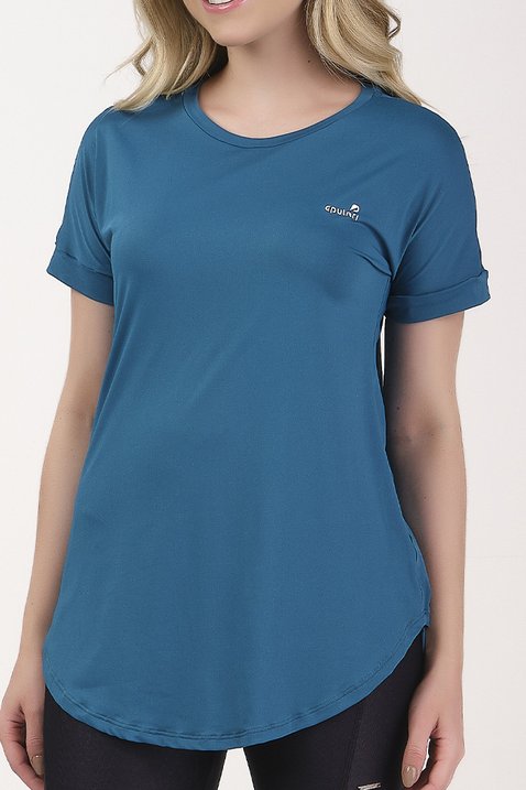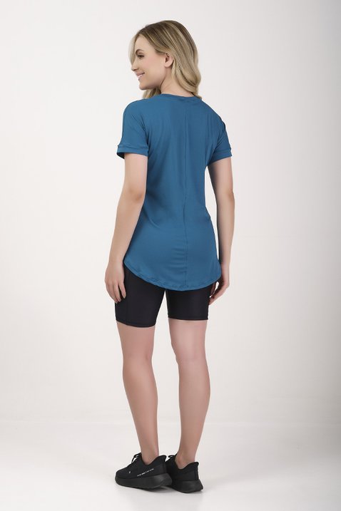Uma peça versátil e cheia de estilo para quem busca conforto com sofisticação! Na moderna cor deep tea, cor tendência e do ano 2025 segundo a WGSN com Coloro, que é super tendência, esta camiseta é confeccionada em poliamida leve, macia e sem transparência, garantindo um toque suave e um caimento impecável.