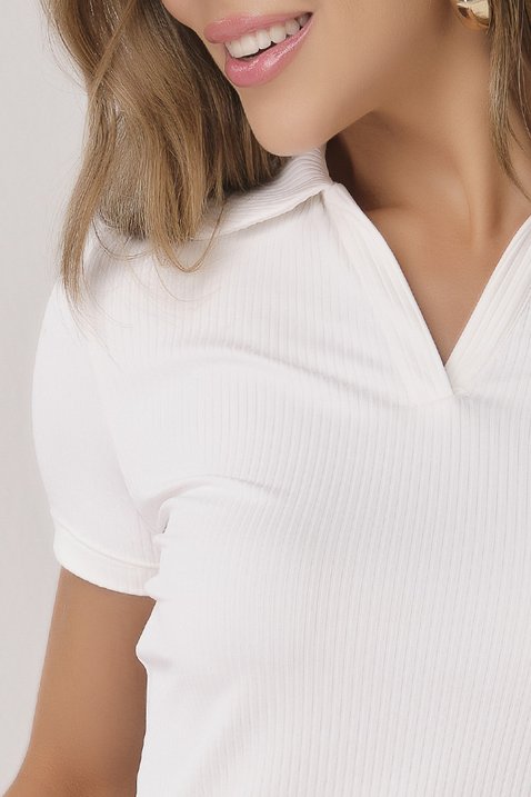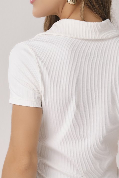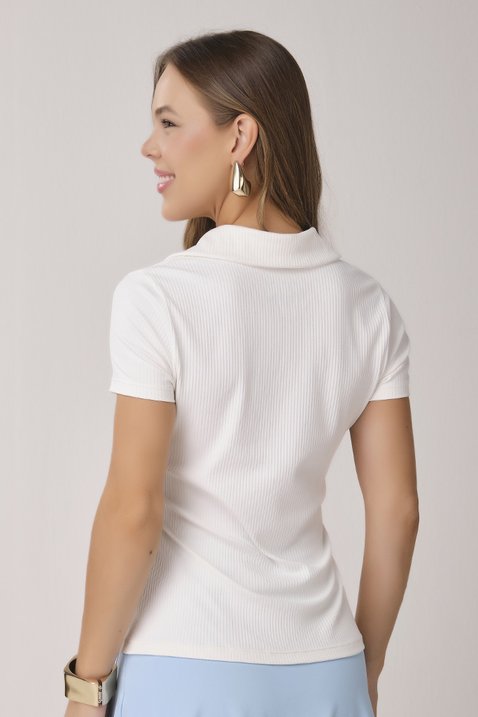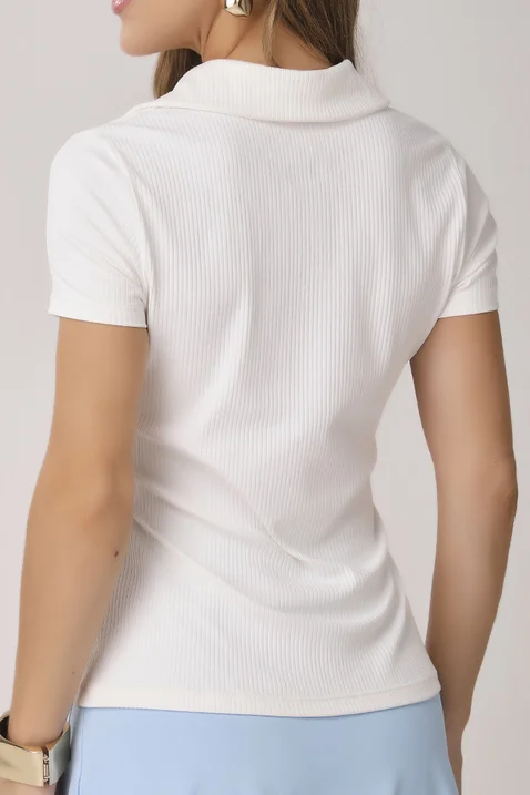 Blusa Polo Off White Canelada com Plaquinha Dourada