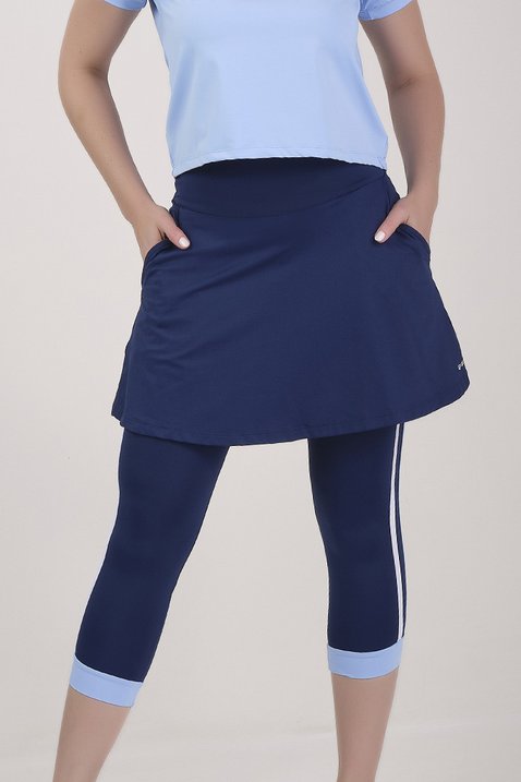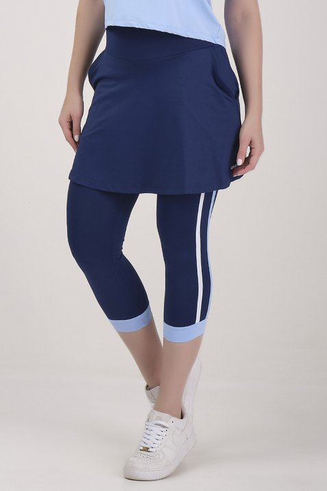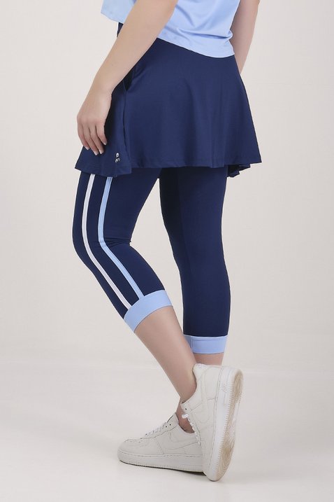 Saia Calça Corsário em Azul Marinho, uma peça de vestuário que combina estilo e funcionalidade de forma excepcional.