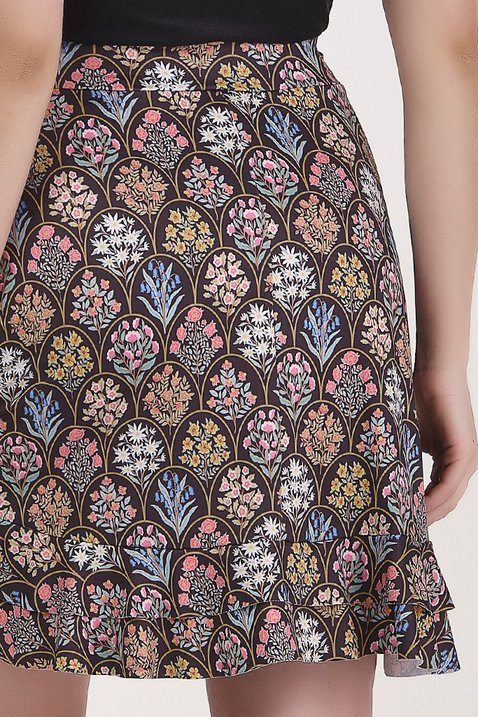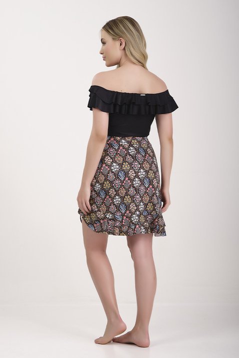 Short embutido: Conforto e segurança com o short costurado na saia, confeccionado no mesmo tecido e estampa para um look harmonioso.